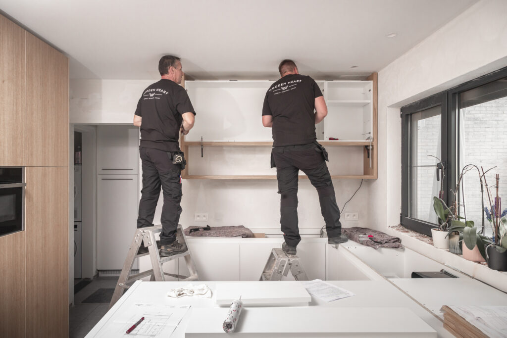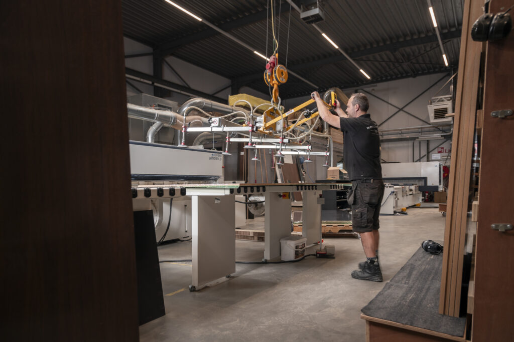 Wat Wooden Heart echt onderscheidt, is ons eigen atelier. Hier vervaardigen we al onze meubels en interieurelementen op maat. In ons atelier beschikken we namelijk over een modern machinepark dat bestuurd wordt door onze eigen vakmensen. Hoewel wij werken met machines, passeert elk onderdeel van jouw maatwerk door de handen van deze collega’s en worden ze tot in het kleinste detail gecontroleerd en afgewerkt. Dit stelt ons in staat om te voldoen aan de hoogste kwaliteitsnormen en zorgt ervoor dat elk stuk perfect aansluit bij de specifieke eisen van jouw project. Onze eigen plaatsers, die intensief samenwerken met onze ontwerpers, zorgen ervoor dat alles vakkundig en precies wordt geïnstalleerd. Hierdoor weet je zeker dat de uitvoering van jouw droominterieur in goede handen is.